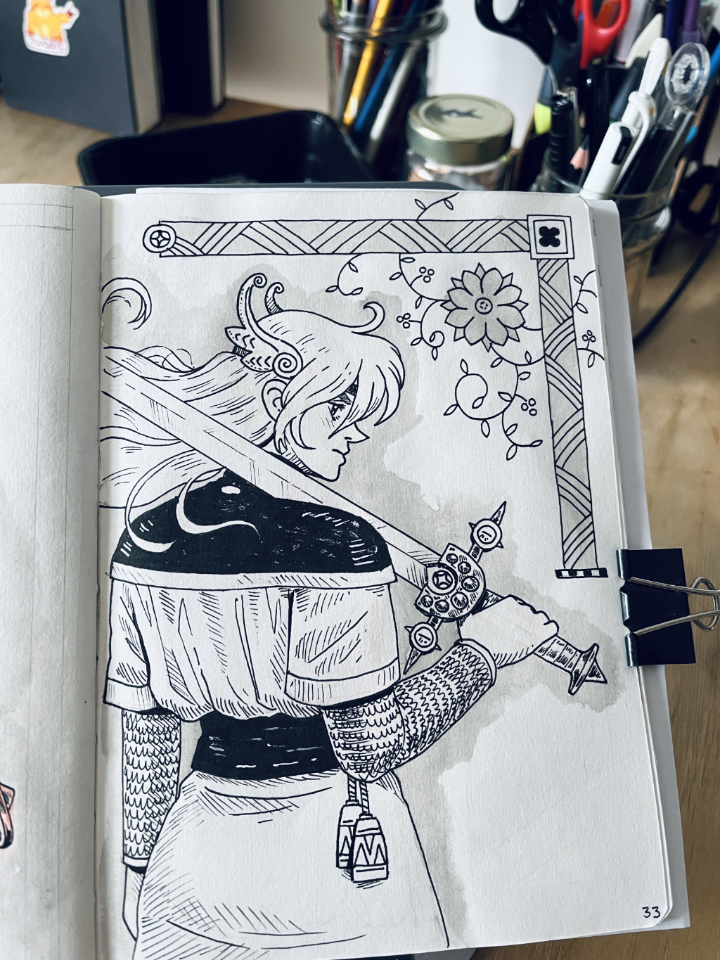 A page from my sketchbook. This is just one of many concepts I drew of Kriemhild.